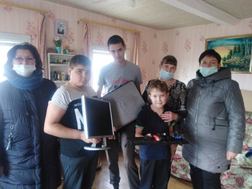 Компьютер с монитором переданы семье, в которой воспитываются трое детей.