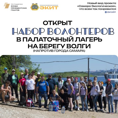 Открыт набор волонтеров для участия в экологической смене на базе палаточного лагеря на берегу Волги в рамках проекта «Чистый Остров». Восемь смен пройдут с 23 июня по 17 августа в Самарской области. Регистрация идет на платмофре Добро.ру.